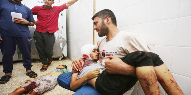 وارتكبت قوات الاحتلال الإسرائيلي مساء أمس مجزرة راح ضحيتها 30 شهيداً وأكثر من 50 جريحاً عقب قصفها مدرسة تؤوي نازحين في مدينة خان يونس جنوب قطاع غزة.