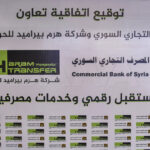 من جانبه لفت رئيس مجلس مديري شركة هرم بيراميد للحوالات المالية إلى أهمية التعاون مع التجاري السوري الذي يمثل مؤسسة مصرفية كبيرة تعزز رؤية الشركة الهادفة للتحول الرقمي، وتوسيع مفهوم التحويل المالي والتطوير بخدماتها من خلال الربط والتعاون مع مختلف القطاعات، ولا سيما القطاع المصرفي.