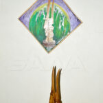 واحتوى المعرض الذي تميز بأسلوب جديد للفنان حمود 26 لوحة، ولكل لوحة منحوتة تماثلها في المضمون.