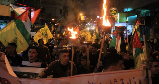 وشدد المشاركون في مسيرة مشاعل في مدينة نابلس شمال الضفة الغربية أمس على استمرار صمود الشعب الفلسطيني بأرضه ومقاومته للاحتلال الإسرائيلي وجرائمه.