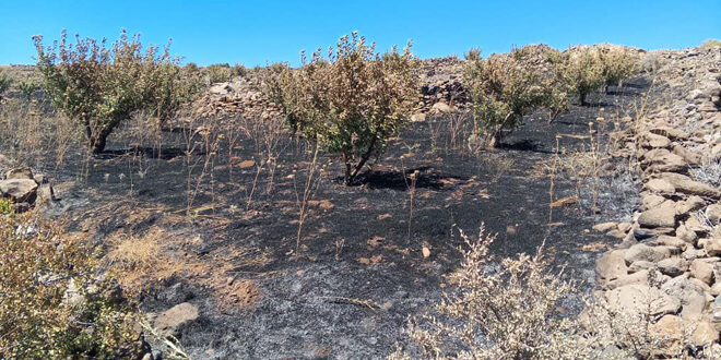 أخمد عناصر الإطفاء بالسويداء اليوم حريقاً امتد على مساحة نحو 50 دونماً تحوي أشجاراً مثمرة في منطقة البجعة شمال شرق قرية مفعلة بريف المحافظة.