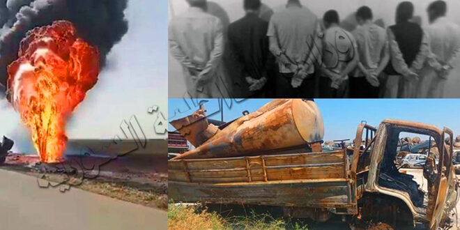 وأضافت الوزارة: “تم العثور على جثة وتحديد هوية صاحبها، ومن خلال المتابعة والبحث والتقصي وإعداد الكمين اللازم في أطراف البادية تمكن الفرع المذكور من إلقاء القبض على شخصين من أفراد المجموعة وبالتحقيق معهما اعترفا بما نسب إليهما وبدلالتهما تم توقيف خمسة أشخاص آخرين قاموا بمساعدة المجموعة بإخفاء المشتقات النفطية المسروقة والتستر على جرائمهم”.