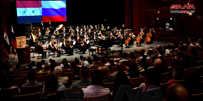 بمناسبة الذكرى الثمانين لإقامة العلاقات الدبلوماسية بين سورية وروسيا أقيم حفل موسيقي في دار الأسد للثقافة والفنون بدمشق.