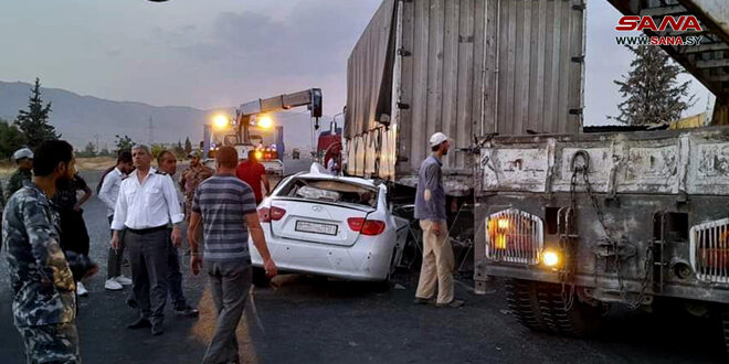 توفي 3 أشخاص من جراء اصطدام سيارة خاصة بشاحنة محمّلة بالبضائع على طريق دمشق – حمص بالقرب من جسر القطيفة.