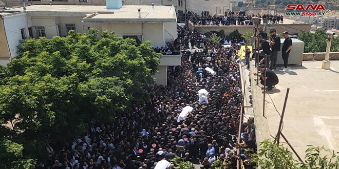شيع الآلاف من أبناء الجولان السوري المحتل ووفود من الأراضي الفلسطينية المحتلة اليوم الشهداء الأطفال الـ 12 الذين ارتقوا أمس جراء انفجار صاروخ اعتراضي إسرائيلي سقط في الملعب البلدي بمجدل شمس المحتلة.