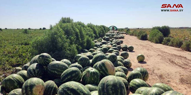 يستمر فلاحو الحسكة بتسويق إنتاج المساحات المزروعة بمحصولي البطيخ الأحمر والأصفر، حيث بلغت كمية الإنتاج المسوق منذ بدء موسم التسويق مطلع الشهر الماضي ولتاريخه أكثر من 23 ألف طن.