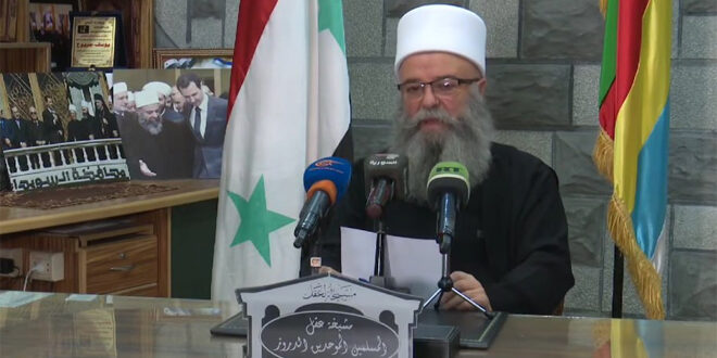 وتابع الشيخ جربوع: نؤكد وإياكم انتماءنا للجمهورية العربية السورية موحدة بقائدها وجيشها وعلمها، ولا نقبل إلا أن تكون سورية واحدة موحدة بكامل جغرافيتها وأطيافها وطوائفها، كما لا نقبل بإقحامنا في لعبة صراع الأمم التي لا تسعى إلا لتفريقنا وإضعافنا وتقسيمنا ونرفض أي تدخلات أو أجندات خارجية في شؤوننا الداخلية.
