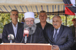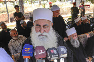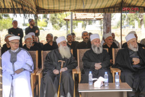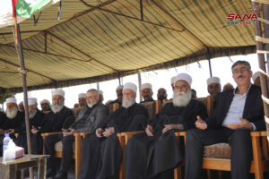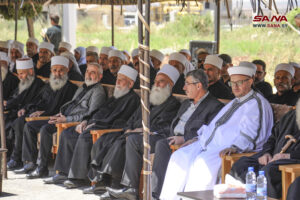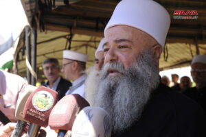وحيا الشيخ يوسف جربوع شيخ طائفة المسلمين الموحدين أهلنا في الجولان الصامدين الصابرين المتجذرين بالأرض، مشيراً إلى أن مقاومة الاحتلال هي الطريق إلى تحرير الأرض، ومشدداً على أن الدم الذي سال على ملعب مجدل شمس هو دم عربي سوري مهما تغطرس الاحتلال بهمجيته وحاول تشويه هويته.