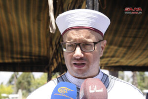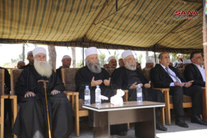 بدوره توجه الشيخ نجدو العلي مدير أوقاف القنيطرة والسويداء في كلمة له بالتحية والتقدير لأبناء الجولان المحتل المتمسكين بهويتهم وانتمائهم للوطن الأم سورية وطردهم للقتلة “مسؤولي الكيان الإسرائيلي وحراسهم” من مجدل شمس.