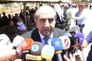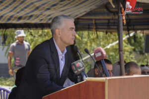 محافظ القنيطرة معتز أبو النصر جمران أشار في كلمته إلى أن المصاب الذي ألم بأهلنا في الجولان السوري هو مصاب وألم لكل السوريين، لافتاً إلى أن دماء الشهداء الطاهرة ملهمة لنا وشاهدة على أن النصر قادم، ومؤكداً على استمرار المقاومة في كل الأراضي العربية المحتلة حتى إنهاء الاحتلال الصهيوني واسترجاع كامل الأرض، ومنوها بالموقف الوطني لأهالي الشهداء والجرحى وطردهم لمسؤولي الكيان الإسرائيلي من أرض مجدل شمس.