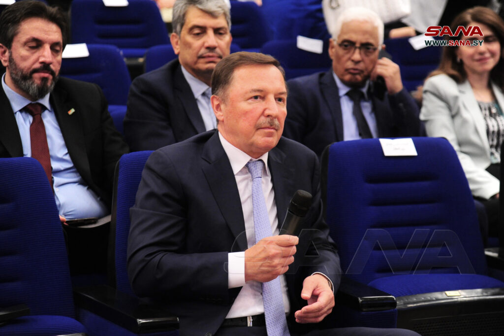 بدوره مدير الأكاديمية الدبلوماسية الروسية ألكسندر ياكوفينكو أشار إلى أن العالم اليوم يمر بفترة صعبة بسبب محاولات الغرب الجماعي وعلى رأسه الولايات المتحدة عرقلة تشكيل نظام عالمي جديد أكثر استقراراً وعدالة، مبيناً أن روسيا وسورية تقفان اليوم في الخط الأمامي للمعركة من أجل الحق والعدالة في عالمنا، ولا شيء يستطيع أن يعرقل صمودهما.