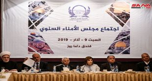 أكد المشاركون فى اجتماع مجلس امناء مؤسسة القدس “سورية” اليوم بمناسبة الذكرى السابعة والستين لنكبة فلسطين في فندق داماروز بدمشق أن القضية الفلسطينية ستبقى القضية المركزية لسورية والشعب العربي لافتين الى وجود تكامل للادوار بين التنظيمات الارهابية المسلحة والمخطط الصهيوني بالمنطقة.