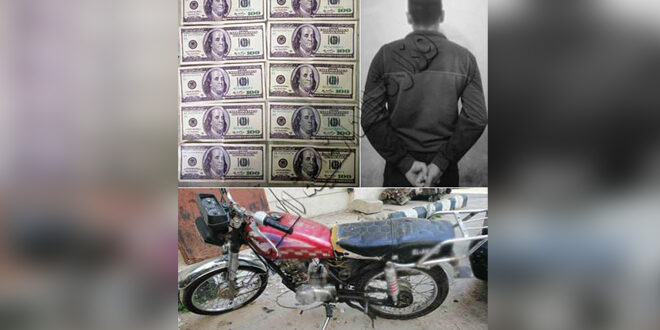 ألقى فرع الأمن الجنائي في اللاذقية القبض على شخص على متن دراجة نارية مهربة في منطقة جبلة وضبط بحوزته مبلغ ألف دولار أمريكي مزور.