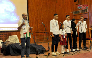 ومن جهته قدم مسؤول قسم الفنون المسرحية في مؤسسة صبا وكاتب العرض المسرحي وسام الحسن شرحاً عن العرض المسرحي والغنائي، لافتاً إلى أن العرض حمل عنوان “على خط جبهة” ويروي قصة مجموعة من الجنود المحاصرين وما سطروه من بطولات إلى حين وصول رفاقهم وفك الحصار عنهم.