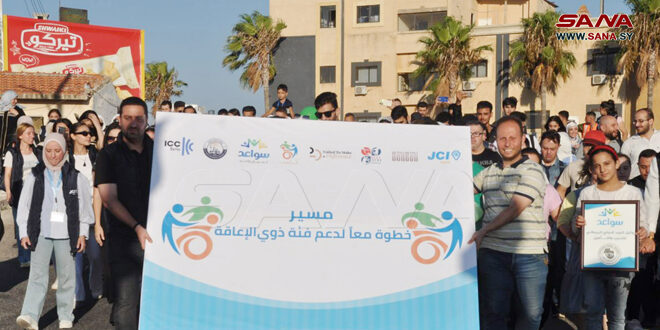 المسير الذي أقيم بالتعاون مع غرفة تجارة حمص ومركز سواعد وجمعية رعاية الطفل وجمعية الصم والبكم ومحل بون بون قالت عنه دانا الآغا الرئيس المحلي للغرفة الفتية الدولية بحمص في تصريح لـ سانا الشبابية: “إنه يأتي ضمن مشروع “لأجلهم” الهادف إلى تمكين ذوي الإعاقة في محافظة حمص، وتقديم محاور تعليمية لتحفيز الإبداع والمهارات الفنية لديهم لمساعدتهم على الانخراط في سوق العمل”.