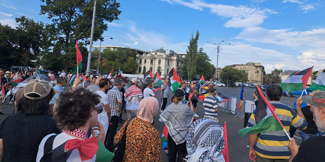 تجمع حشد من المواطنين الرومانيين وأبناء الجالية العربية أمام مقر الحكومة الرومانية في بوخارست تعبيراً عن غضبهم ورفضهم وتنديدهم باستمرار العدوان الإسرائيلي وحرب الإبادة الجماعية ضد الشعب الفلسطيني في قطاع غزة.