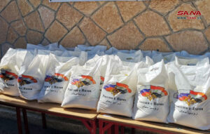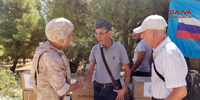وزع مركز التنسيق الروسي في سورية اليوم مساعدات إنسانية في مدرسة قرية عكوبر بمنطقة صيدنايا بريف دمشق.