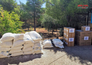وشملت المساعدات لسكان القرية 3 أطنان من المواد الغذائية تتضمن الدقيق والأرز والسكر والحليب المعلب والزيت النباتي والشاي.