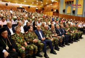 أمين فرع حزب البعث العربي الاشتراكي بحمص عمر حورية أكد في كلمة بالمناسبة أن ذكرى تأسيس الجيش العربي السوري عيد وطني يستحق الاحتفال به، لأن ما يسطره الجيش من بطولات وما يحققه من انتصارات هو قمة العطاء والبذل في سبيل عزة الوطن وكرامته.