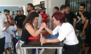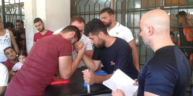 بمشاركة نحو ثلاثين لاعباً ولاعبة أقامت اللجنة الفنية لبناء الأجسام باللاذقية بطولة المحافظة لمصارعة الأذرع للرجال والسيدات في ملعب الباسل.