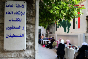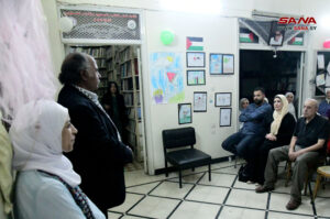 دعماً للقضية الفلسطينية وحق الشعب الفلسطيني بالعودة أقام الاتحاد العام للكتاب والصحفيين الفلسطينيين وجمعية التراث الشعبي مساء اليوم فعالية بعنوان (طوفان الأقصى بعيون الأطفال), وذلك بمقر الاتحاد بدمشق.