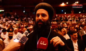 المطران جوزيف بالي المعاون البطريركي في بطركية السريان الأرثوذكس بدمشق قال “إننا اليوم نحتفل بسيدة الوطن المعروفة بالعطاء ودعم المؤسسات التي تعنى بالعمل الاجتماعي والإنساني”.