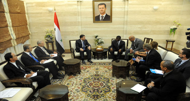 وبحث الدكتور فيصل المقداد نائب وزير الخارجية والمغتربين مع “بياني” والوفد المرافق سبل تعزيز التعاون في مجال تقديم المساعدات الانسانية للنازحين .