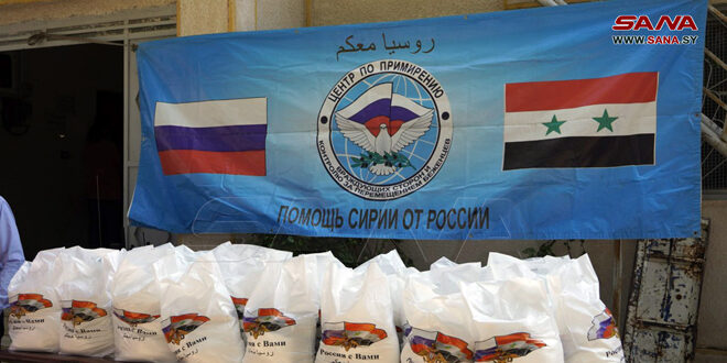 وزع مركز التنسيق الروسي في سورية مساعدات غذائية، وطبية على أهالي قرية المسمية بريف درعا.