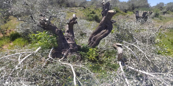 اعتدى مستوطنون إسرائيليون اليوم على أراضي الفلسطينيين الزراعية في سهل رامين شرق مدينة طولكرم بالضفة الغربية، وقطعوا عشرات الأشجار.