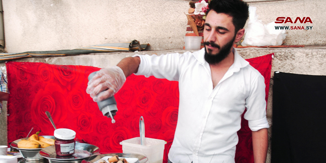 الشاب غيث 23 عاماً روى خلال حديثه لسانا الشبابية كيف اختار العمل في هذا المجال مؤخراً بعد عودته من دولة الإمارات للاستقرار في الوطن مستفيداً من خبرته التي اكتسبها قبل ثلاث سنوات في مجال تصنيع الحلويات الشعبية.