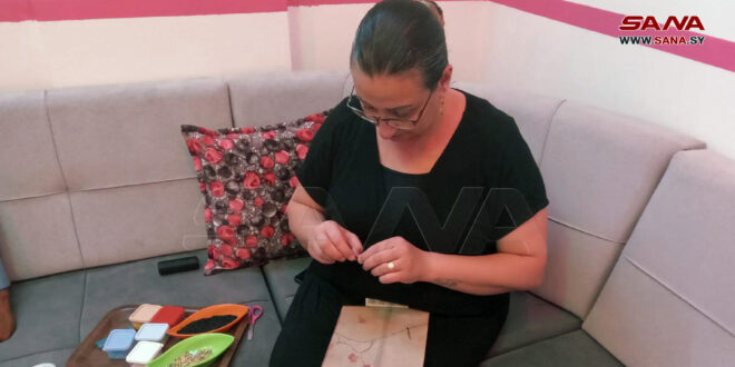 جسدت الحرفية رشا مونس حالة شغفها بالعمل اليدوي للانطلاق بمشروعها الجديد لتنفيذ رسومات من الطبيعة وزخارف وتصاميم متنوعة بالخرز الناعم على شكل إكسسوارات لمختلف الأعمار، وذلك بالاعتماد على الإبرة والخيط وكذلك نول خشبي صغير صممته لهذه الغاية.