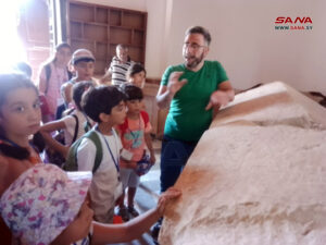 وخلال زيارة الأطفال إلى متحف حمص الوطني بين معاون أمين متحف حمص الآثاري عبيده البيطار أن الأطفال خلال هذه الجولة تعرفوا على تاريخ المبنى وما هو المتحف، وكيف يدل وجوده على عراقه تلك المدينة وأصالتها، كما تعرفوا على أهم اللقى الأثرية المعروضة في المتحف ابتداء من عصور ما قبل التاريخ وحتى فترة الاحتلال الفرنسي، وتم استعراض الموجودات الأثرية في بهو المتحف وهي التوابيت والتمثال الرخامي وبعض الجرار الفخارية.