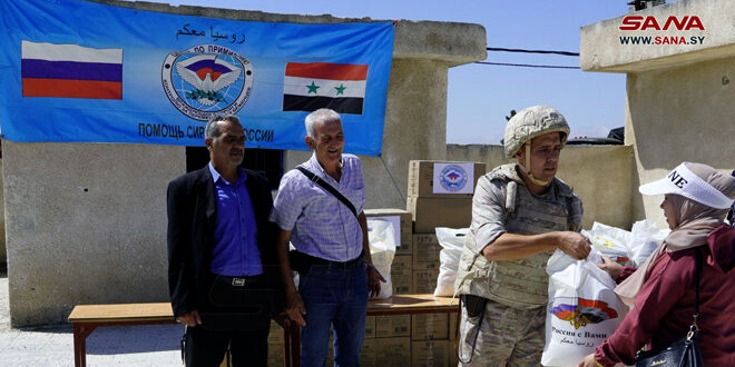 وثمن أهالي القرية جهود روسيا الاتحادية ودعمها لسورية، معبرين عن شكرهم لما تقدمه من المساعدات الإنسانية الغذائية والطبية.