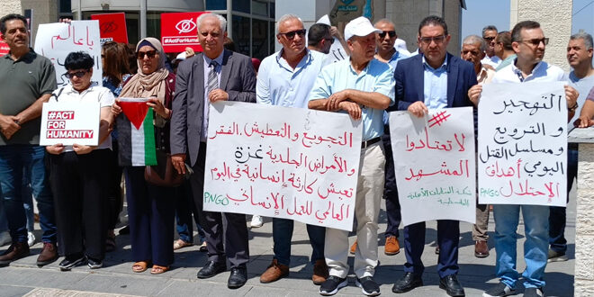 وذكرت وكالة وفا أن المشاركين في الوقفة التي نظمت بمناسبة اليوم العالمي للعمل الإنساني الذي يوافق الـ 19 من آب من كل عام دعوا إلى وقف الاعتداءات على العاملين في المجال الإنساني وفرق الإغاثة في غزة، وإلى إدخال المساعدات الإنسانية، منددين بصمت المجتمع الدولي حيال استمرار العدوان، ومعتبرين ذلك مشاركة في الجريمة المركبة التي ترتكبها قوات الاحتلال، بكل ما تشمله من قتل وتجويع وتعطيش وتهجير وتفقير وانتشار للأمراض.