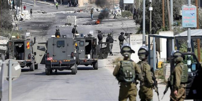 وأصيب ثمانية فلسطينيين واعتقل آخرون أمس خلال اقتحام قوات الاحتلال الإسرائيلي مناطق متفرقة في الضفة الغربية.