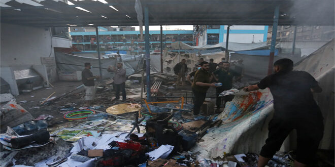 استشهد 12 فلسطينياً، وأصيب آخرون اليوم جراء قصف الاحتلال الإسرائيلي مدرسة تؤوي نازحين في مدينة غزة.