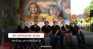 وشارك في الفعالية التي أقيمت بالتعاون مع وزارة الشؤون الاجتماعية والعمل ووزارة السياحة ومحافظة دمشق أكثر من 700 طفل يتيم من دور أيتام مختلفة، إضافة لأطفال الهيئة العامة لمدارس أبناء وبنات الشهداء وأطفال من ذوي الإعاقة، وتضمنت مجموعة من الفقرات الترفيهية والرياضية والتوعوية للأطفال.