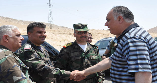 تفقد محافظ حمص طلال البرازي اليوم إحدى النقاط العسكرية لقواتنا المسلحة في الجهة الشمالية الغربية بمحيط مدينة تدمر.
