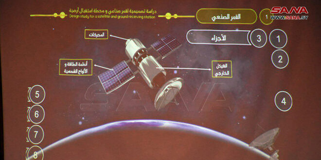 قدم طالبان من قسم التصميم الميكانيكي بكلية الهندسة الميكانيكية والكهربائية بجامعة دمشق مشروعاً تضمن دراسة تصميمية لقمر صناعي مع محطة إرسال أرضية، وذلك في إطار مشاريع التخرج السنوية المتميزة التي يقدمها طلاب الكلية.