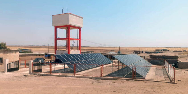 أنهت المؤسسة العامة لمياه الشرب والصرف الصحي في الحسكة تركيب منظومة طاقة شمسية لبئر قرية العودة بريف القحطانية شمال المحافظة لتأمين التغذية الكهربائية، وذلك بدعم من المجلس النرويجي للاجئين.