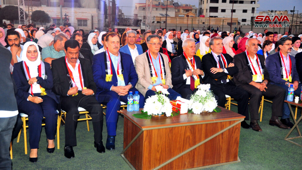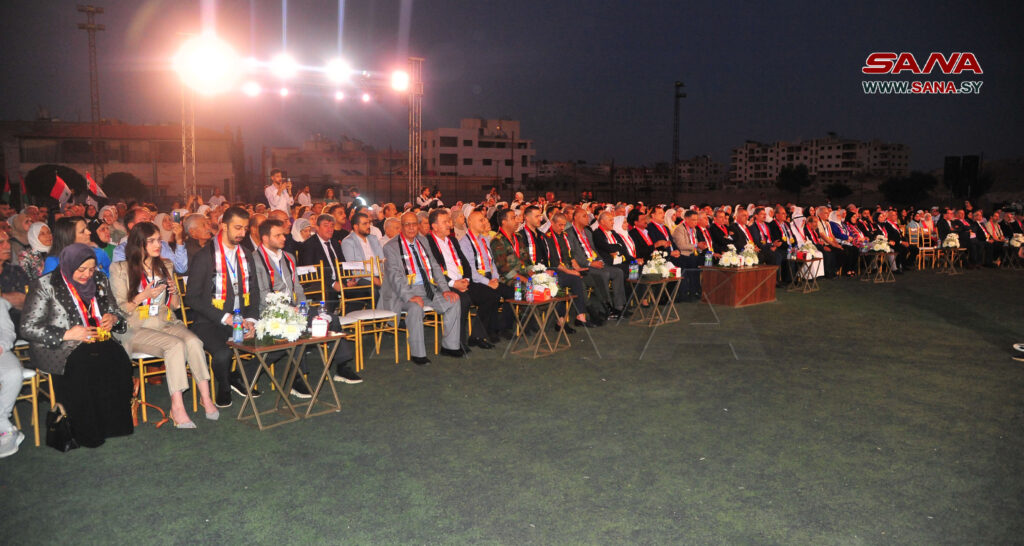 حضر الاحتفال محافظ ريف دمشق أحمد خليل وأمين فرع ريف دمشق لحزب البعث العربي الاشتراكي المهندس رضوان مصطفى ومديرو المؤسسات والمكتب التنفيذي في المحافظة وحشد من الأهالي.