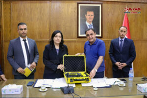 وسلمت الوزيرة إلى محافظة حماة 10 أجهزة قياس للمقاومة الخراسانية مقدمة من الصين، وهي مخصصة لقياس المقاومة الخراسانية للمباني كدفعة أولى ستتبعها دفعات أخرى من الأجهزة.