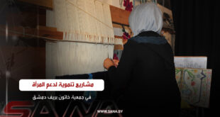 ومن مشغل السجاد اليدوي، ذكرت هدى زرزور خريجة معهد فنون أنها وجدت من خلال الجمعية فرصة للعمل في مجال دراستها إلى جانب تعلم حياكة السجاد اليدوي الذي يحتاج إلى لمسات فنية، منوهة بدور الجمعية التي تأسست منذ عام 2020 لجهة الحفاظ على المهن التراثية وتعليمها للأجيال والمساهمة في تنمية المرأة.
