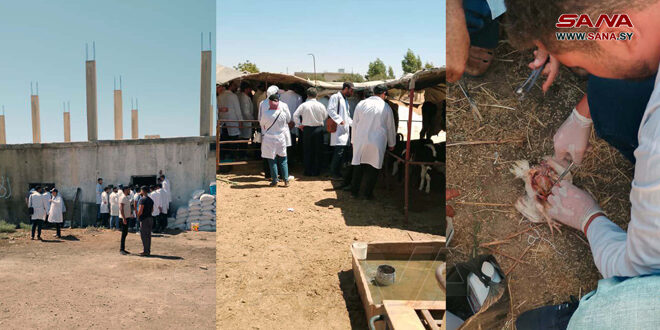 في إطار دمج الجامعة بالمجتمع وإكساب الطلبة الخبرات العملية والعلمية، نفذ اليوم أساتذة وطلاب المعسكر الإنتاجي في كلية الطب البيطري في جامعة دمشق – فرع درعا ورشة عملية في عدد من مزارع الدواجن والأبقار ومعمل للأعلاف في بلدتي معربة وصماد بريف درعا الشرقي.