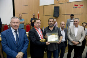ونوه عضو القيادة المركزية لحزب البعث العربي الاشتراكي ياسر شاهين بجهود الطبقة العاملة وصمودها وما تقوم به للحفاظ على المعامل والمنشآت التي لحق بها الكثير من الضرر نتيجة الإرهاب، وظلت تعمل بجهود وخبرات الكوادر الوطنية الذين كانوا الرديف لبواسل الجيش العربي السوري.
