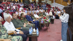 وخلال الاحتفالية ألقيت عدة كلمات تحدثت عن انتصار دير الزور التي صمدت لأكثر من ألف يوم قبل أن يتمكن رجال الجيش العربي السوري من كسر حصار تنظيم “داعش” الإرهابي عليها، وعبرت الكلمات عن عظمة الشهادة والشهداء وعن المزايا والمكرمات التي يحظى بها ذوو الشهداء في سورية.