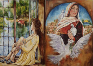 وعن وجود المرأة قالت الفنانة ابراهيم: المرأة حاضرة في أغلب لوحاتي، فهي ينبوع الجمال والحب والحنان في قوتها وضعفها وخيبتها لذلك وجودها بعالمي ضروري ومؤثر.