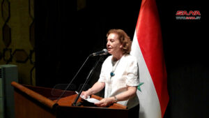 وزيرة الثقافة في حكومة تسيير الأعمال الدكتورة لبانة مشوح نوهت في كلمة خلال الحفل بالمكانة الخاصة للملتقى والذي يتم العمل لأن يتبوأ موقعاً مميزاُ على أجندة الحياة التشكيلية السورية مستقبلاً، لما تشكله مملكة أوغاريت من قيمة حضارية وإنسانية حيث ولدت فيها أول أبجدية واكتشفت فيها أقدم نوتة موسيقية عرفها التاريخ.