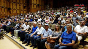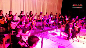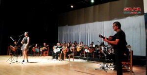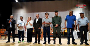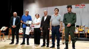وتضمن الحفل تكريم الفنانين المشاركين بالملتقى ومعرضاً لأعمالهم الفنية والتي عكست رؤاهم وإحساسهم بجمالية المكان وتفرده التاريخي والحضاري إضافة الى حفل فني موسيقي لفرقة “أوركسترا الغيتارات” في معهد محمود العجان الموسيقي بقيادة واشراف المايسترو فيصل عمران.