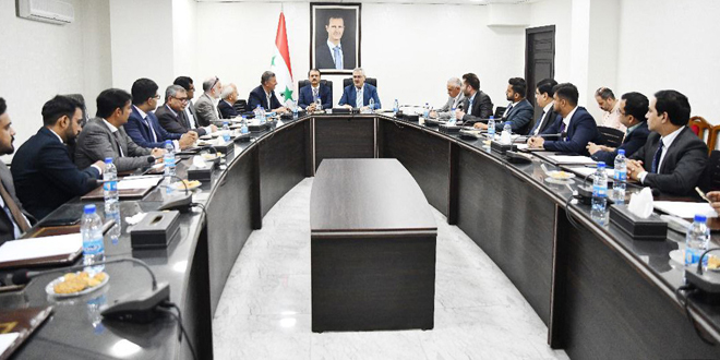 بحث وزير التجارة الداخلية وحماية المستهلك في حكومة تسيير الأعمال محسن عبد الكريم علي مع السفير الباكستاني في دمشق شاهد أختر والوفد المرافق له من رجال أعمال وتجار باكستانيين سبل زيادة التبادل التجاري لتعزيز التعاون المشترك بين البلدين.